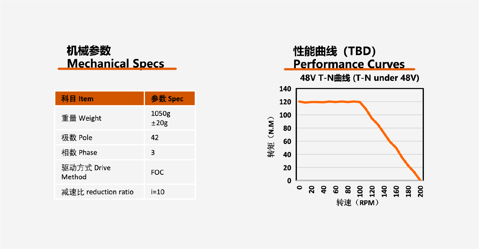 重量:4200g±50g 极数:64极 相数:3相 驱动方式:FOC磁场定向控制 减速比:20:1